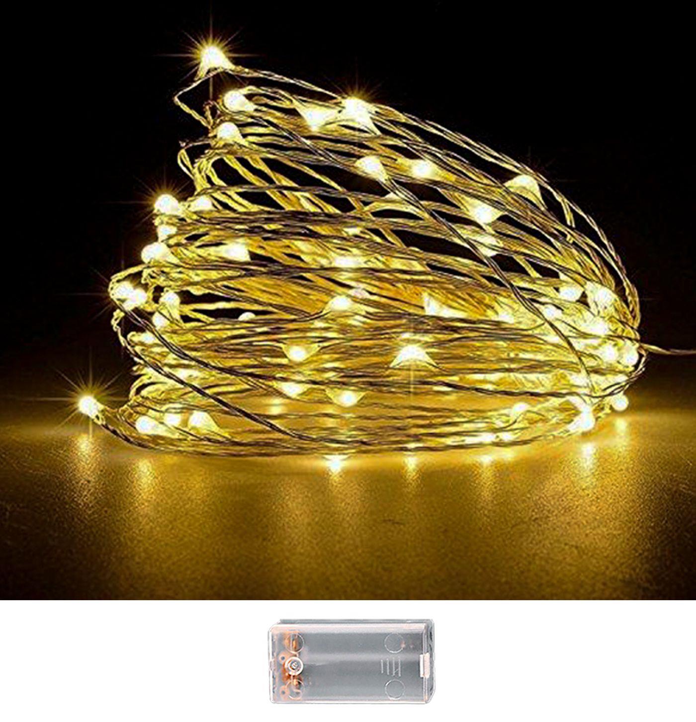 100 led μπαταρίας λευκό θερμό σταθερού φωτισμού. Για εσωτερικό χώρο. Με χάλκινο καλώδιο. }οι μπαταρίες 2αα δε περιέχονται 10,3m