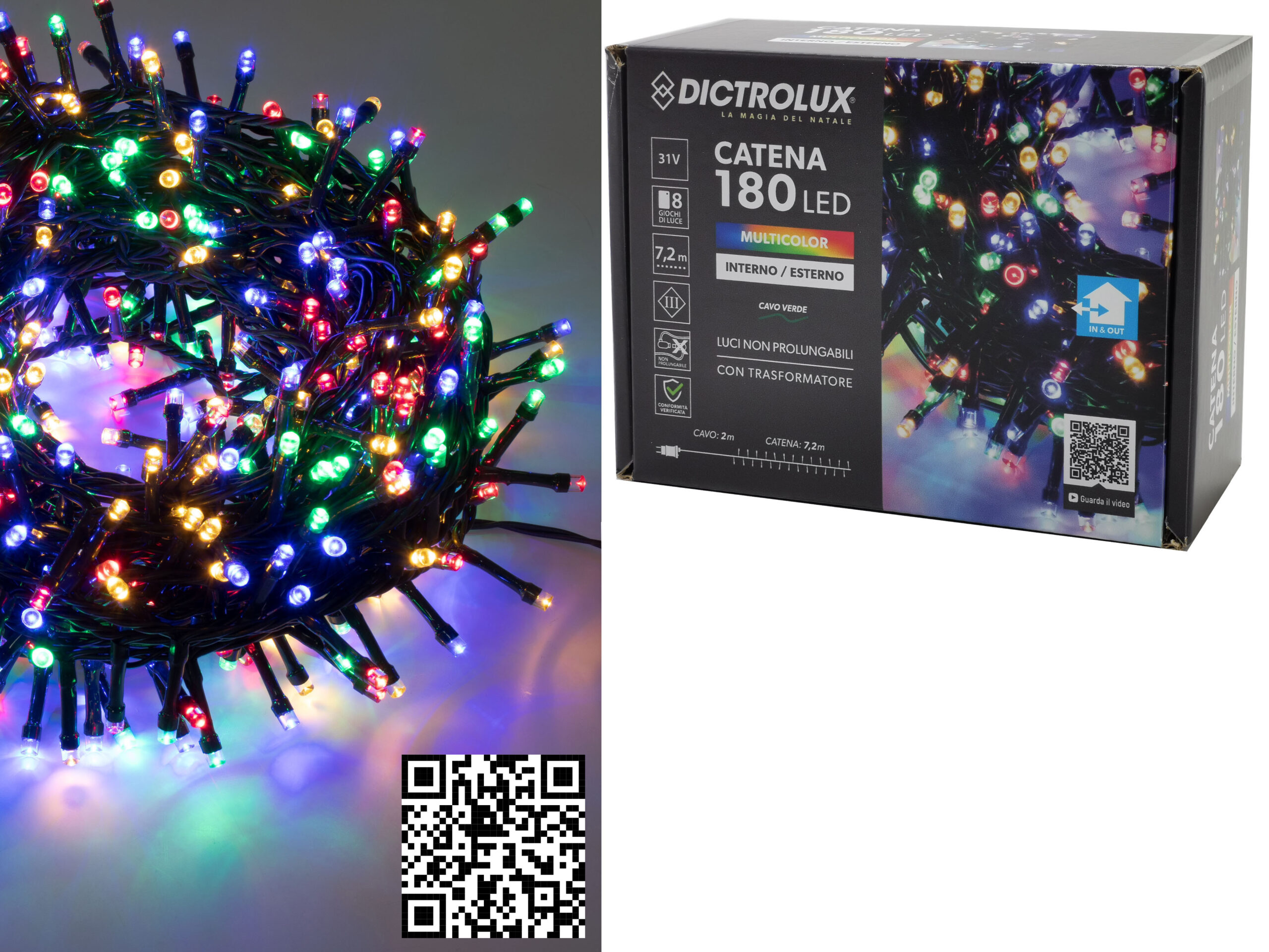 Καλώδιο: 2m Αλυσίδα: 7,2m Εσωτερικού και εξωτερικού χώρου με μετασχηματιστή. Πράσινο καλώδιο