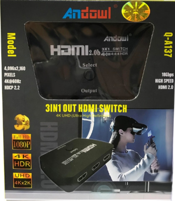 Το Q-A137 HDMI SWITCH UHD 2.0 σας επιτρέπει να συνδέσετε 3 πηγές HDMI στην τηλεόρασή σας, χωρίς καμία απώλεια σήματος ή κρυπτογράφησης.