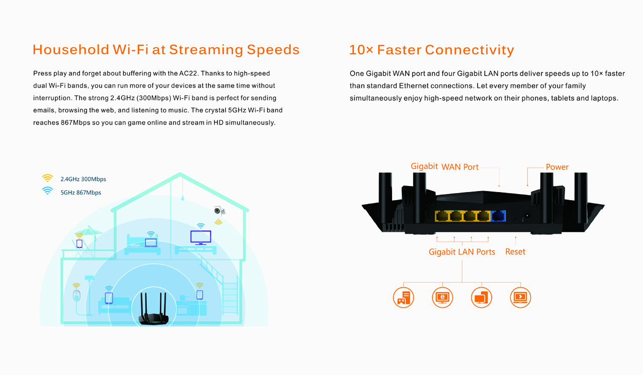 Ρυθμός σήματος: 5 GHz: Έως 867 Mbps, 2,4 GHz: Έως 300 Mbps