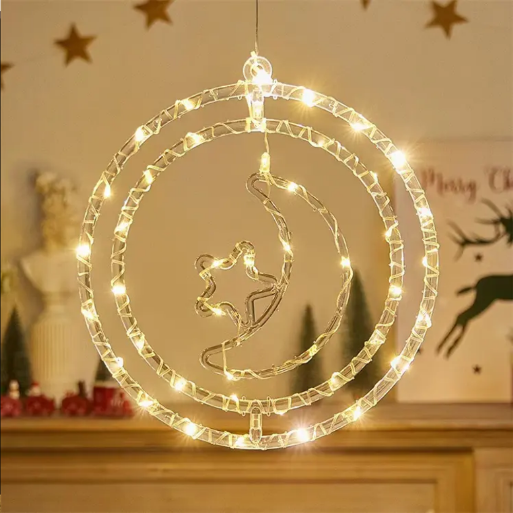 Χριστουγεννιάτικο φωτεινό διακοσμητικό 3D LED με διαφανείς κρίκους και σχέδιο. Λευκός φωτισμός που αντανακλά στη διαφάνεια και δημιουργεί ενα εντυπωσιακό εφέ. Διάμετρος: 32cm.