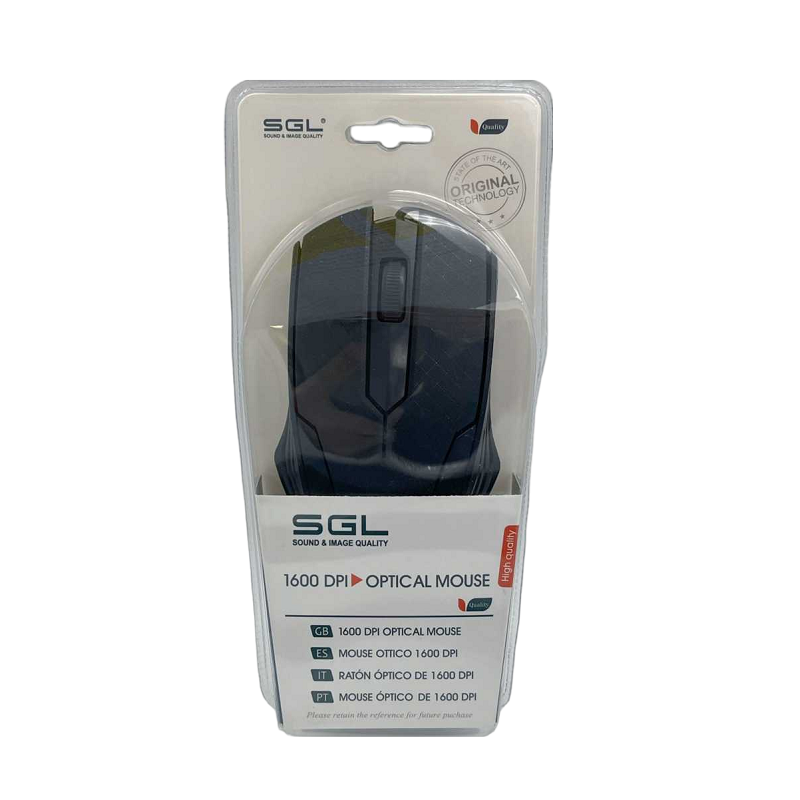 Ενσύρματο ποντίκι Η/Υ της SGL, οπτικό, με εργονομικό design και υψηλές αποδόσεις, ιδανικό για καθημερινή χρήση. Max 1600 DPI. Αριθμός πλήκτρων: 3. Μήκος καλωδίου: 1.2m.