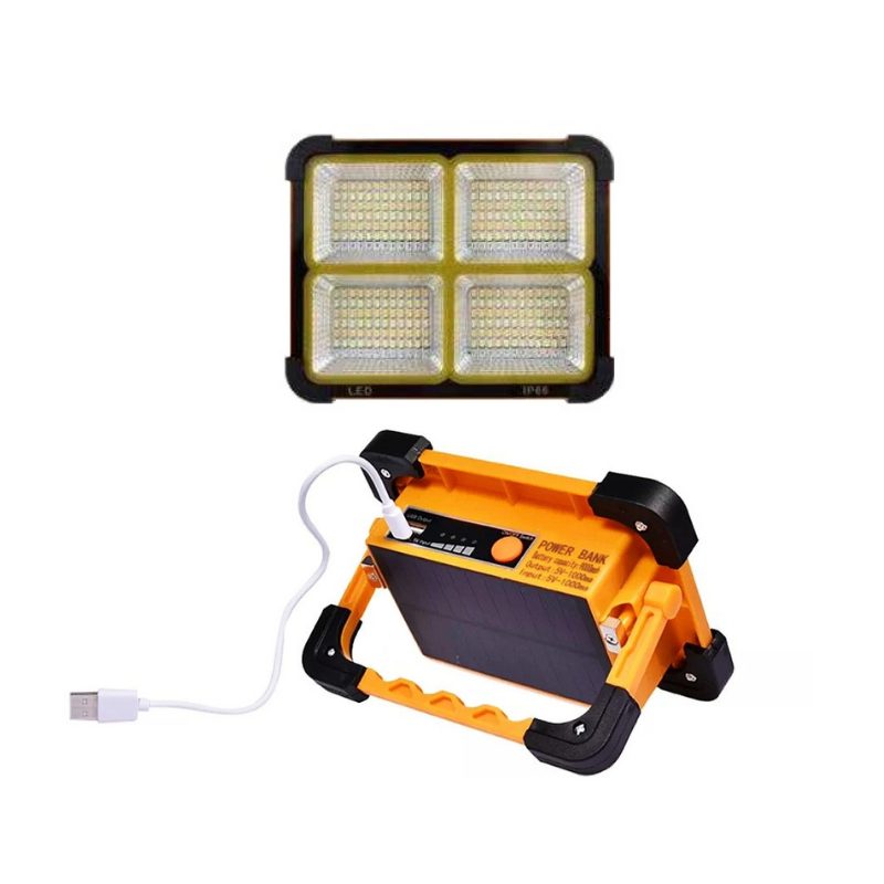Επαναφορτιζόμενος προβολέας εργασίας LED με ηλιακό πάνελ που προσφέρει έξτρα αυτονομία μπαταρίας και με πτυσσόμενο σταντ στήριξης.