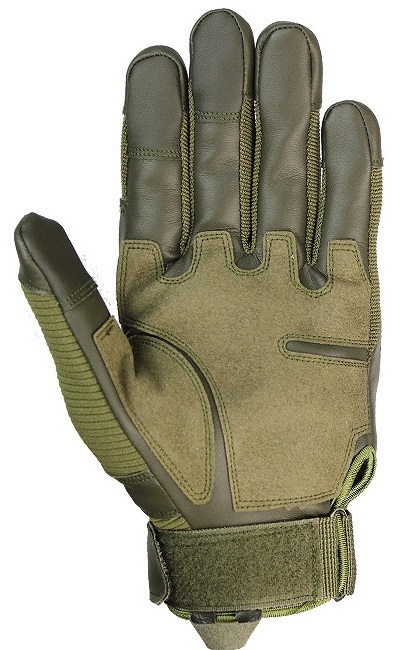 Γάντι επιχειρησιακό δράσης, με ενίσχυση. Το γάντι είναι κατασκευασμένο από ανθεκτικό spandex για ευελιξία και ενισχυμένη αντιολισθητική επένδυση δερματίνης. Παρέχει ασφαλή εφαρμογή στον καρπό με ρυθμιζόμενη μανσέτα και σκληρή προστατευτική ενίσχυση στις αρθρώσεις. Διαθέτει ειδική τεχνολογία κατασκευής στα δάχτυλα που επιτρέπει τη χρήση οθόνης αφής. One size.