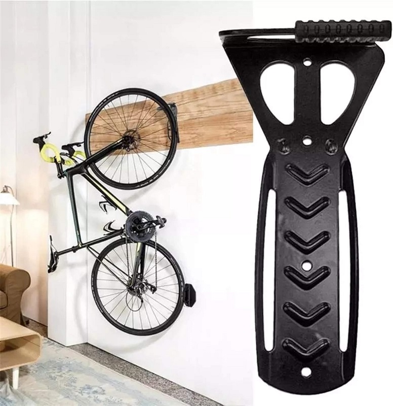 Επιτοίχια βάση ποδηλάτου για κάθετη στήριξη, με μαλακό προστατευτικό κάλυμμα στο γάντζο για την αποφυγή φθορών.