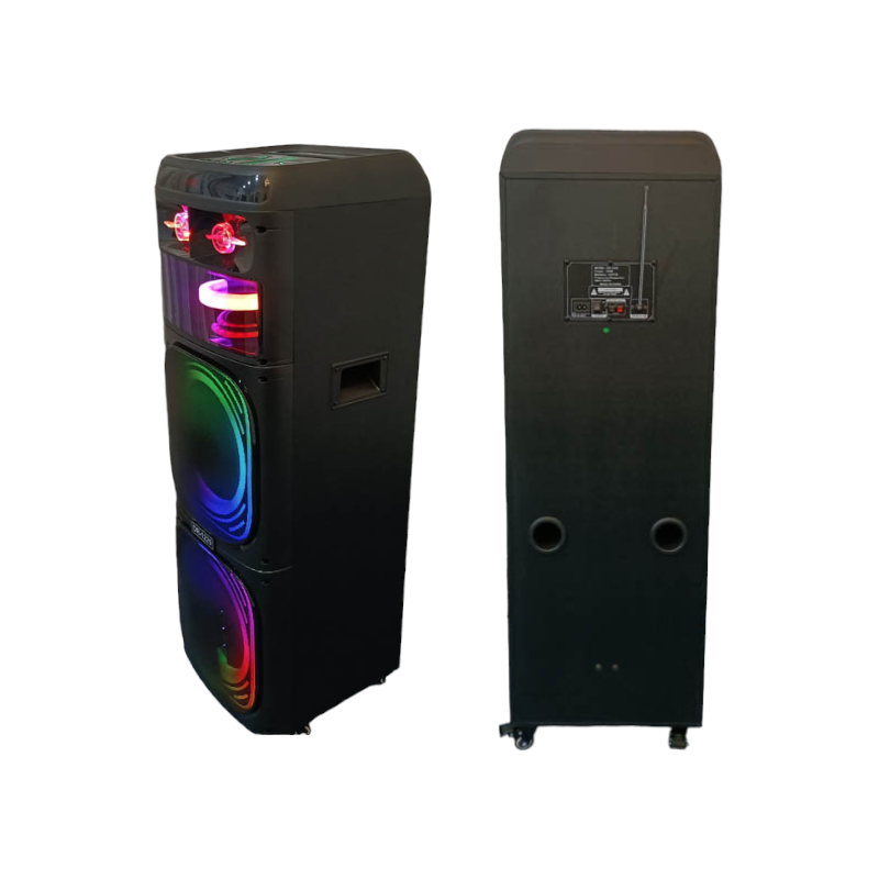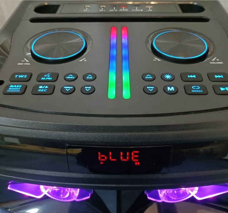 Φορητό ηχείο subwoofer με ήχο εξαιρετικής ποιότητας και φωτισμό LED RGB που προσαρμόζεται στο ρυθμό σας και δημιουργεί εντυπωσιακή ατμόσφαιρα στο πάρτυ σας. Περιλαμβάνει 2 ασύρματα μικρόφωνα καραόκε και τηλεχειριστήριο.