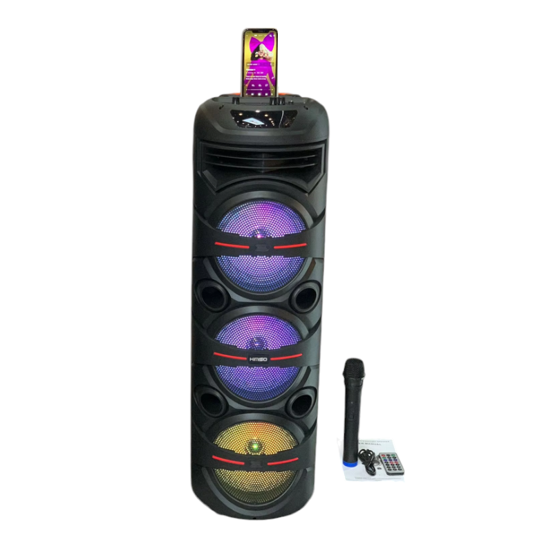 Φορητό ηχείο subwoofer με ήχο εξαιρετικής ποιότητας και φωτισμό LED RGB που προσαρμόζεται στο ρυθμό σας και δημιουργεί εντυπωσιακή ατμόσφαιρα στο πάρτυ σας. Περιλαμβάνει 1 ενσύρματο μικρόφωνο καραόκε και τηλεχειριστήριο. Χαρακτηριστικά: Ισχύς: 24W, Μέγεθος ηχείου: 8”x 3, Bluetooth 5.0, FM Ραδιόφωνο, Θύρες: USB, TF Card (έως 32gb), AUX, μικροφώνου, Βάση στήριξης smartphone, Εύκολες επιλογές ρυθμίσεων – Easy control buttons, Ψηφιακή οθόνη, Ενσωματωμένη επαναφορτιζόμενη μπαταρία 7.4v, Αυτονομία έως και 6 ώρες, Διάρκεια φόρτισης: 6 ώρες, Αντιολισθητική βάση με ρόδες και λαβή μεταφοράς, Διαστάσεις: 28*28*89.5cm.