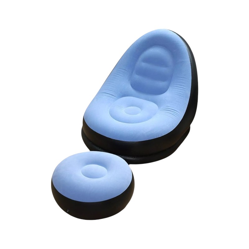 Φουσκωτή πολυθρόνα σετ με φουσκωτό υποπόδιο, κατασκευασμένη από αδιάβροχο υλικό υψηλής ανθεκτικότητας με μαλακή, βελουτέ επίστρωση.