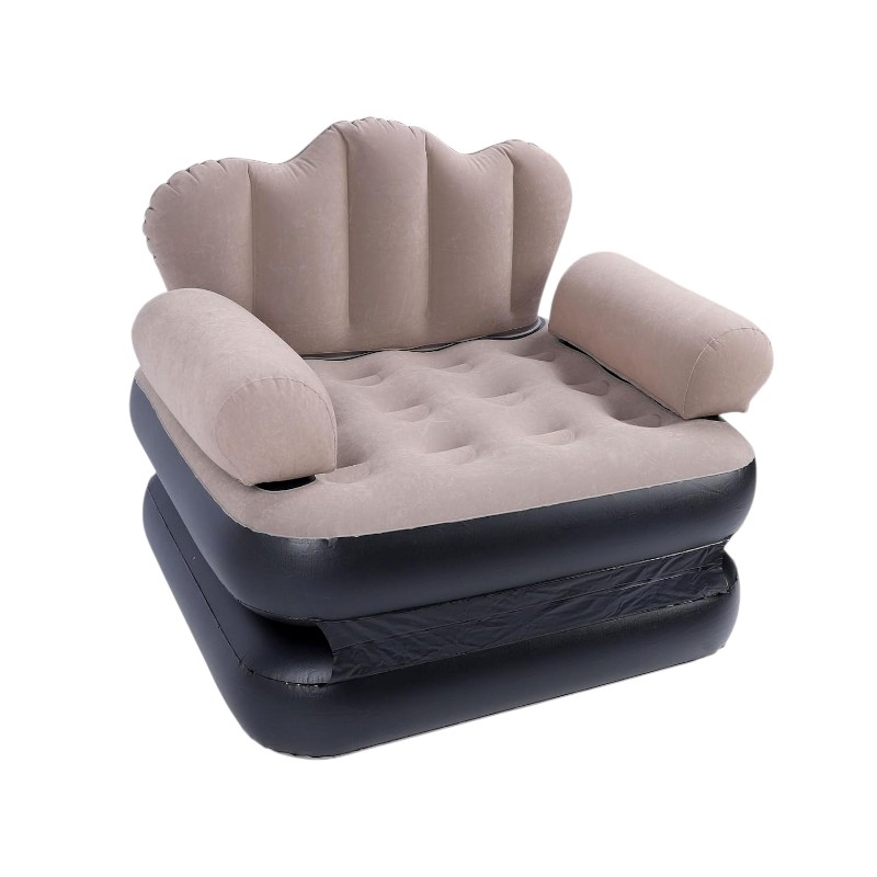 Φουσκωτή πολυθρόνα-κρεβάτι πτυσσόμενη, κατασκευασμένη από αδιάβροχο υλικό υψηλής ανθεκτικότητας με μαλακή, βελουτέ επίστρωση.