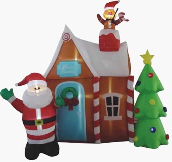 Φουσκωτό, διακοσμητικό Χριστουγεννιάτικο Σπιτάκι Άγιου Βασίλη με εσωτερικό φωτισμό LED.