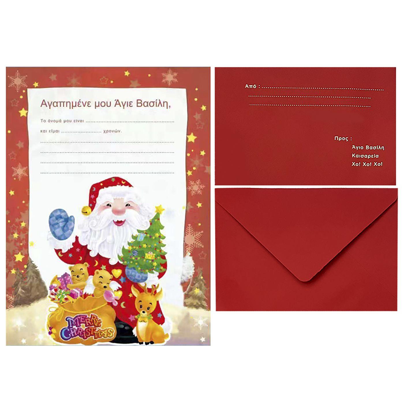 Σετ=γράμμα & κόκκινο φάκελο για τον Άγιο βασίλη 23x17cm