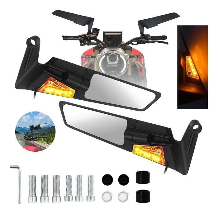 Καθρέπτες μοτοσυκλέτας περιστρεφόμενοι, με ενσωματωμένα φλας LED και πλήρες σετ συνέργων τοποθέτησης.