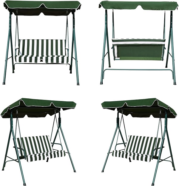 Κούνια κήπου διθέσια με ισχυρό μεταλλικό σκελετό και προστατευτική τέντα. Ιδανική για απολαυστικες στιγμές χαλάρωσης στο μπαλκόνι σας, την βεράντα, τον κήπο, το εξοχικό σας.