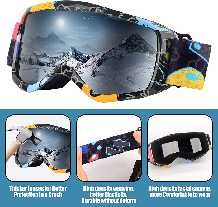 Παιδική μάσκα Σκι αντιανεμική, με anti-fog φακό καθρέπτη, με ενσωματωμένη επένδυση γύρω από το πρόσωπο και ρυθμιζόμενο λουράκι κεφαλής. Διαθέτει ειδικά κανάλια αερισμού που επιτρέπουν την καλή ροή αέρα για μεγαλύτερη άνεση. Οι φακοί mirror παρέχουν εξαιρετική αντίθεση και προστατεύουν από τις αντανακλάσεις. 100% προστασία UV. Αnti-fog φακός για προστασία από την ομίχλη και καθαρή όραση. Αφρώδης μαλακή επένδυση εσωτερικά που προσαρμόζεται στο σχήμα του προσώπου για άριστη εφαρμογή και μόνωση. Υψηλή ανθεκτικότητα σε συγκρούσεις και σπασίματα. Μπορούν να τοποθετηθούν επάνω από γυαλιά οράσεως/μυωπίας.