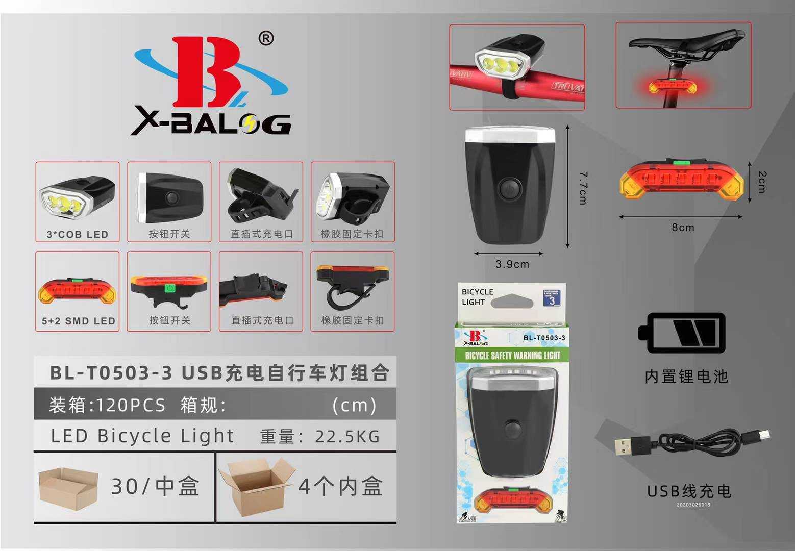 Φως ποδηλάτου LED T0503 με μπροστινό προβολάκι και οπίσθιο φως