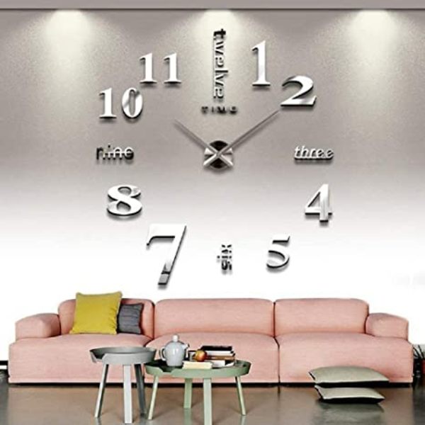 Ρολόι τοίχου με αυτοκόλλητα ψηφία 3D Ασημί 80x80cm Z015 OEM